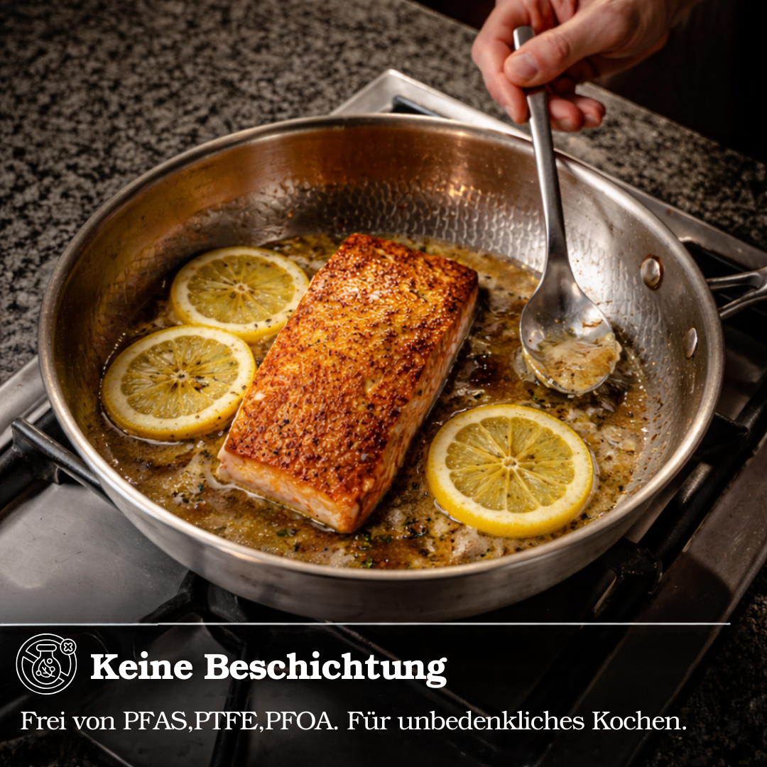 Viele Menschen wollen heute ohne PFAS und Beschichtungen kochen, doch unbeschichtete Pfannen bringen ein neues Problem mit sich: