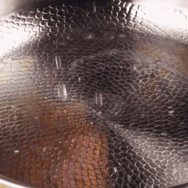 Erhöhen Sie die Hitze stufenweise und geben Sie Öl oder Bratgut hinzu, sobald die Pfanne heiß wird.